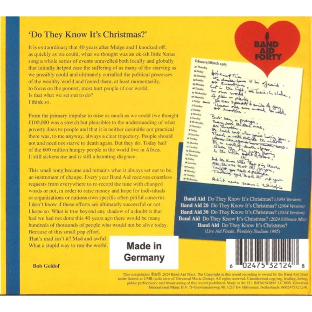 In 1984 'Do They Know It’s Christmas?', inspired by the famine in Ethiopia, was spearheaded by Bob Geldof and Midge Ure under the name Band Aid. It became an instant global phenomenon, raising £8 million within its first year, selling over a million copies in just a week, and topping charts around the world. Now, 40 years later, a commemorative anniversary version features vocals from the original, as well as subsequent recordings.