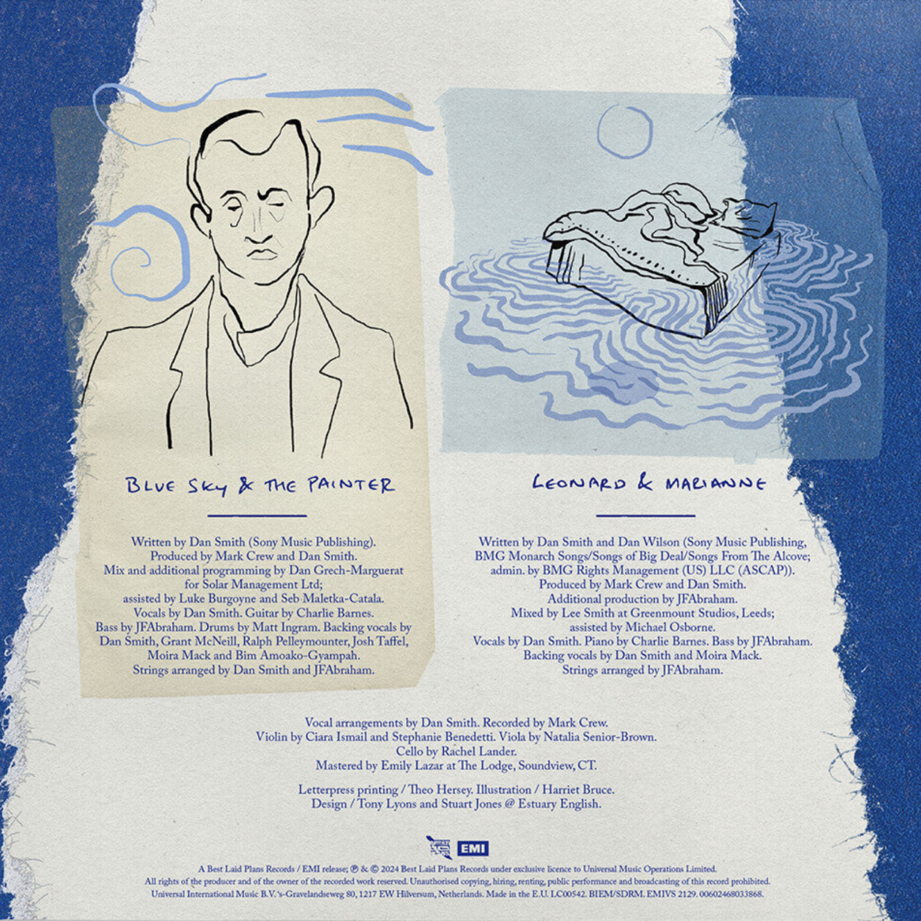 Bastille's "&" Part Two is a two track single featuring 'Blue Sky & The Painter' and 'Leonard & Marianne', taken from their new album "&" (Ampersand). "&" is collection of story songs that explores figures from history, mythology, and pop culture. With artwork by Theo Hersey & Dan Smith and illustrations by Harriet Bruce.