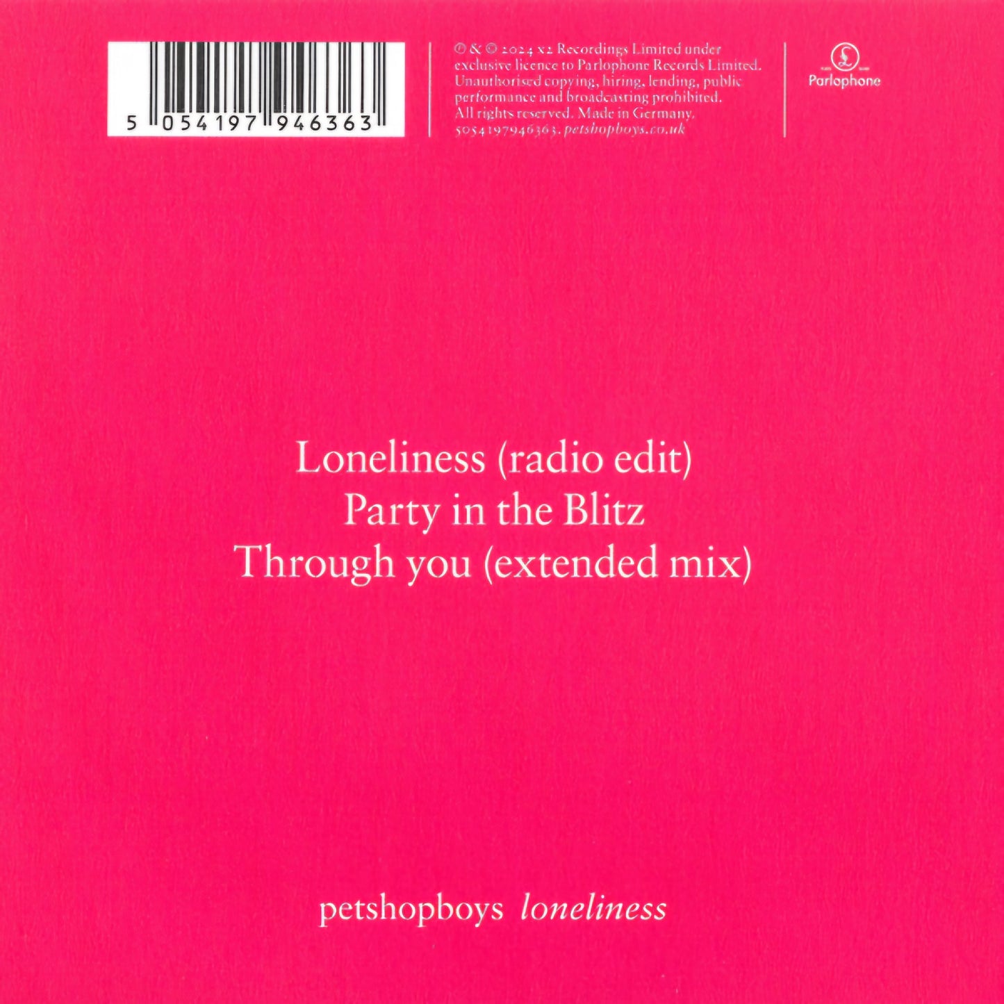 'Loneliness' is the lead single from the Pet Shop Boys’ album 'Nonetheless'. It's a disco bop about social isolation with "uplifting music & reflective lyrics". The CD single features an additional track, 'Party in the Blitz', an extended mix of the track 'Through You', and a radio edit of the title track 'Loneliness'.
